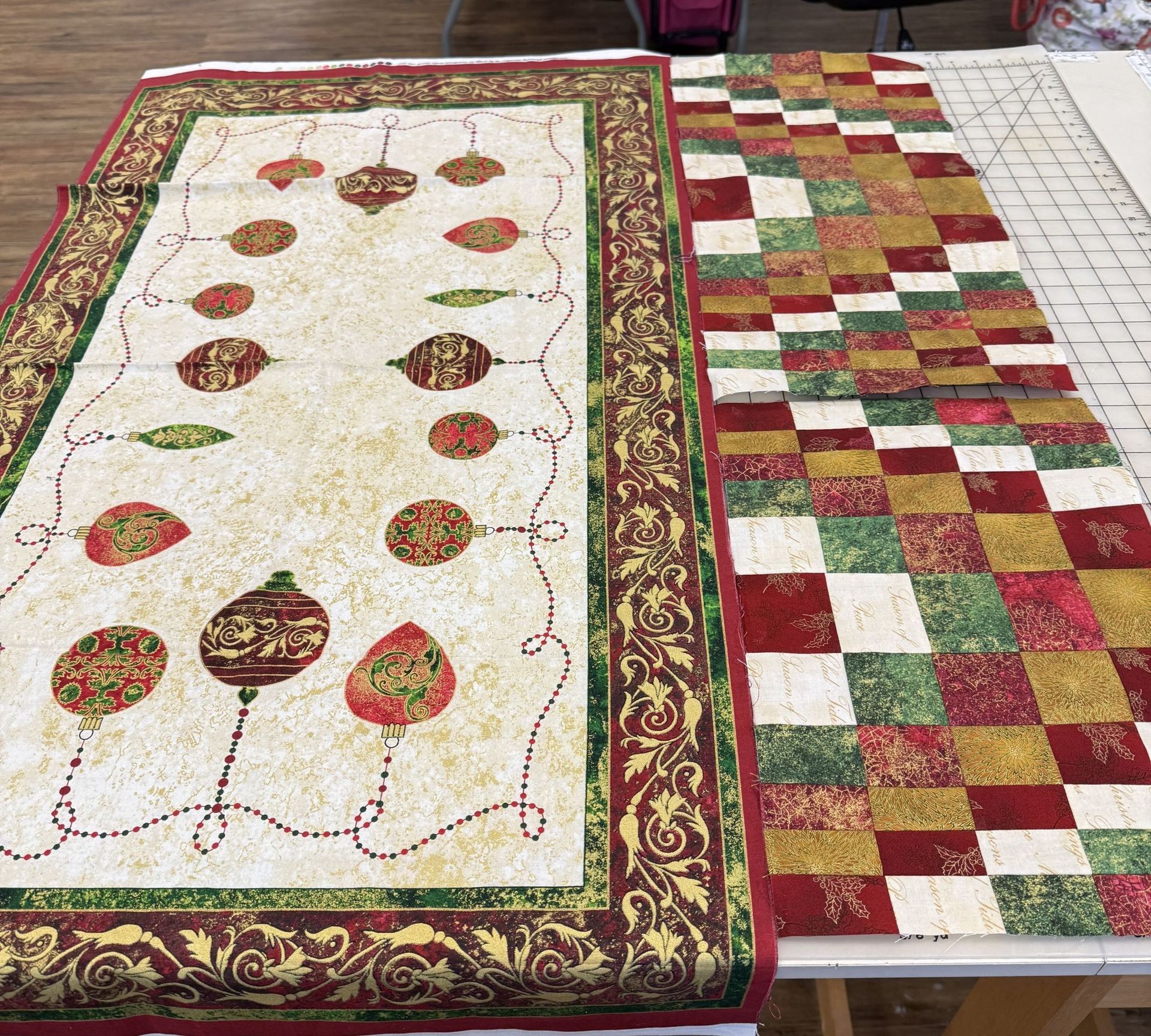 This month, we have a “Two in One” class…..Bargello & 3-D! We will be sewing a Bargello border on our panel, using jelly rolls for the 2 ½” strips or cut your own 2 ½” strips. Plus we will be adding 3-D Bow Tie corner stones to our panel.