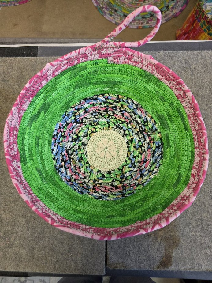 Rope Bowl - Instructor, Anne Robinson. Perfect Christmas Gift! Fast, fun, and useful! Using one clothesline you can make 2 or 3 bowls (depending on size). Super easy to customize with different fabrics. You'll be making bowls for everyone, once you have made one.